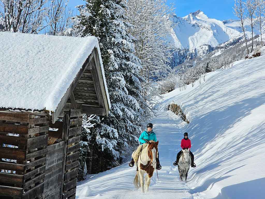 Das Knirschen der Hufe, die klare Winterluft und die Sonne, die dein Gesicht wärmt. Beim Winterreiten in Prägraten am Großvenediger erlebst du die verschneite Bergwelt aus einer ganz besonderen Perspektive.